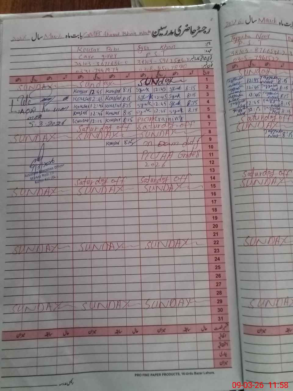 | 38**** | Sy**** Kh**** | PST Science/Maths | Regular | 0 | 0 | 0 | 0 | 0 | 0 | 0 | 0 | 0 | Exam Duty |