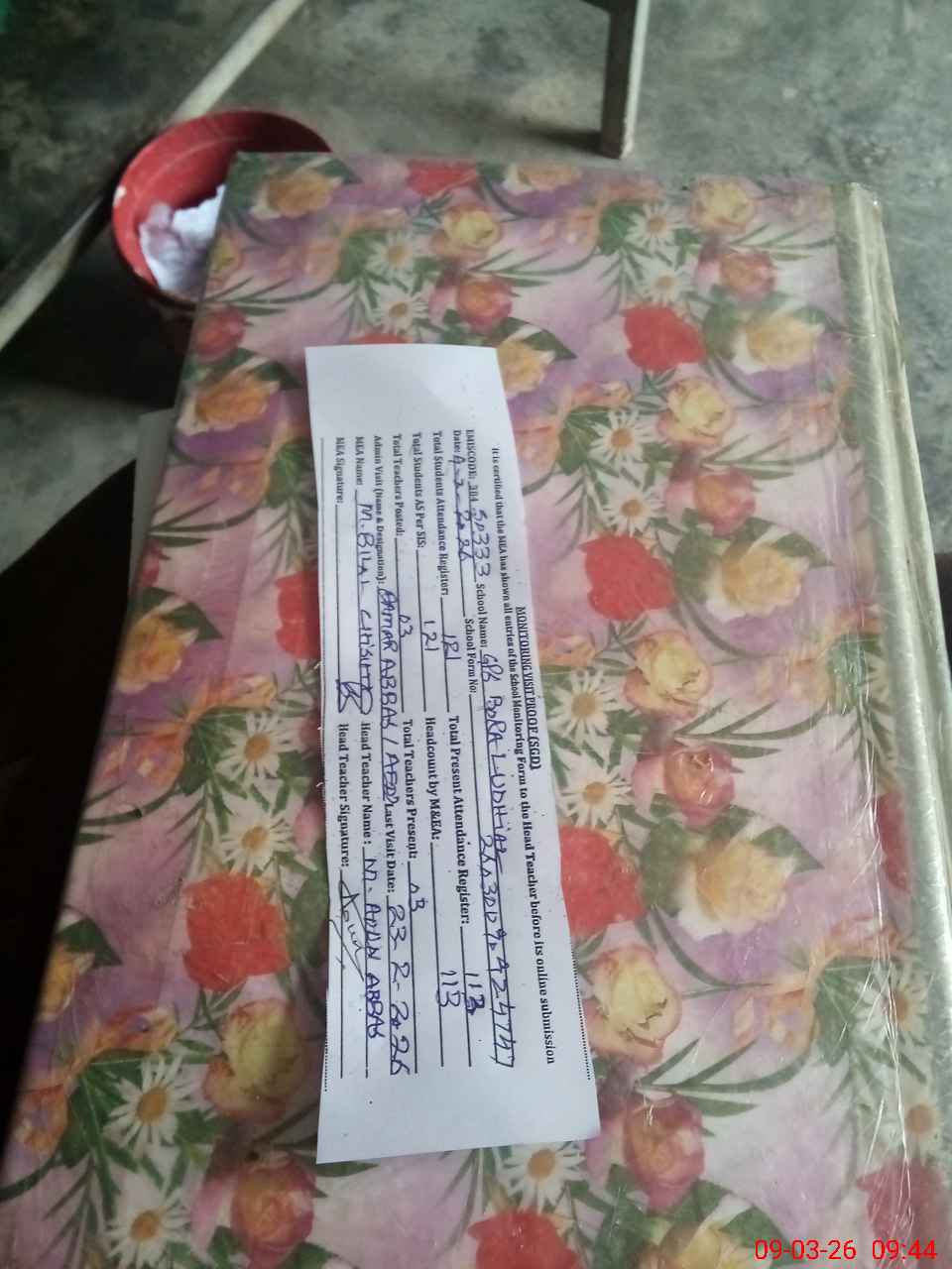 | Attendance Register | Head Teacher | MEA with School | Visit Proof |