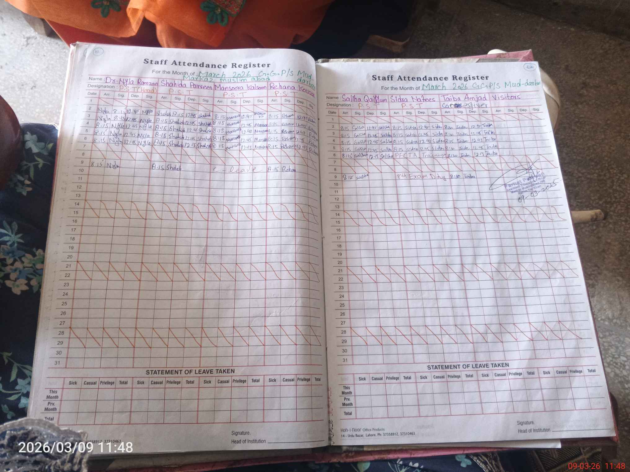 | Attendance Register | Head Teacher | MEA with School | Visit Proof |