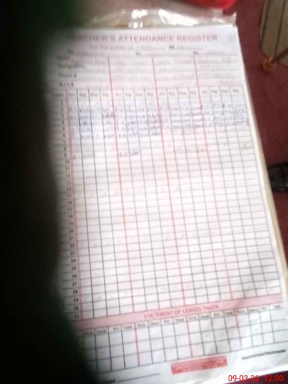 | 33**** | Kh**** Pa**** | PST Arts | Regular | 0 | 0 | 0 | 0 | 0 | 0 | 0 | 0 | 0 | Exam Duty |