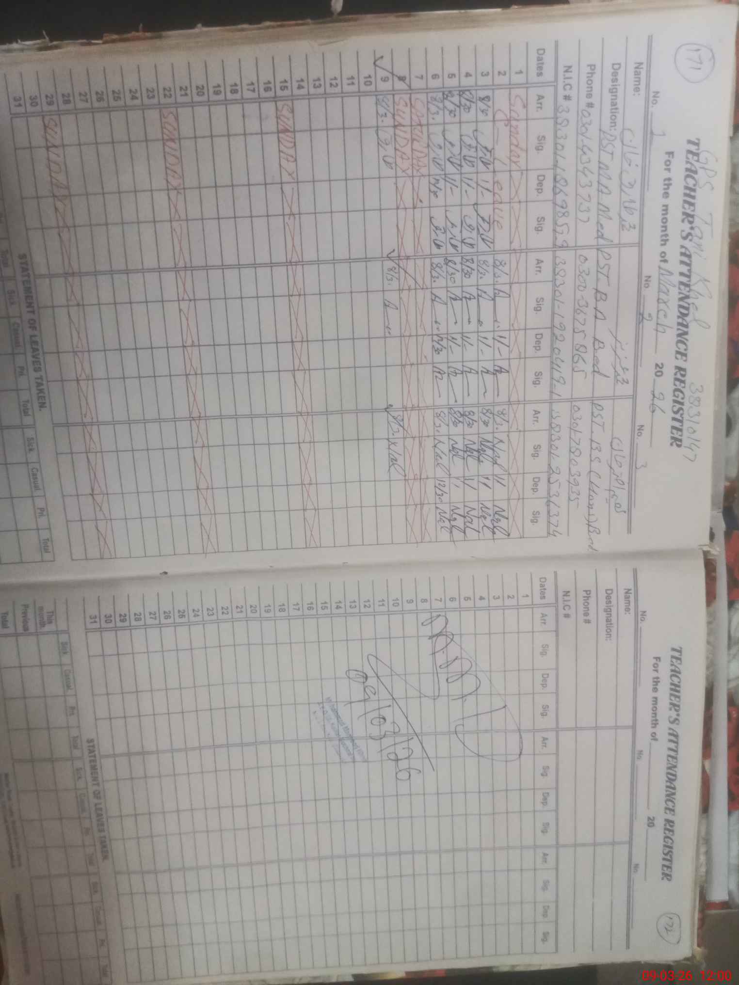 | CNIC | Full Name | Designation | R/C | Absence During Last Calender Month |