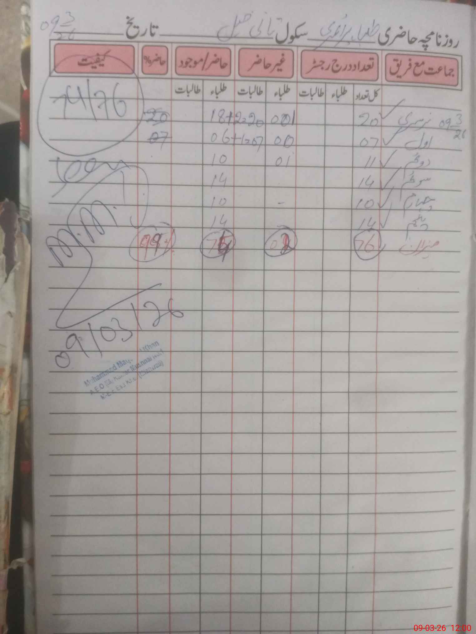 | Monitoring Date: 09-03-2026 | Start Time: 09-03-2026 11:43 AM | End Time: 09-03-2026 12:00 PM | Name of MEA: Mu**** Ma**** Kh**** | |