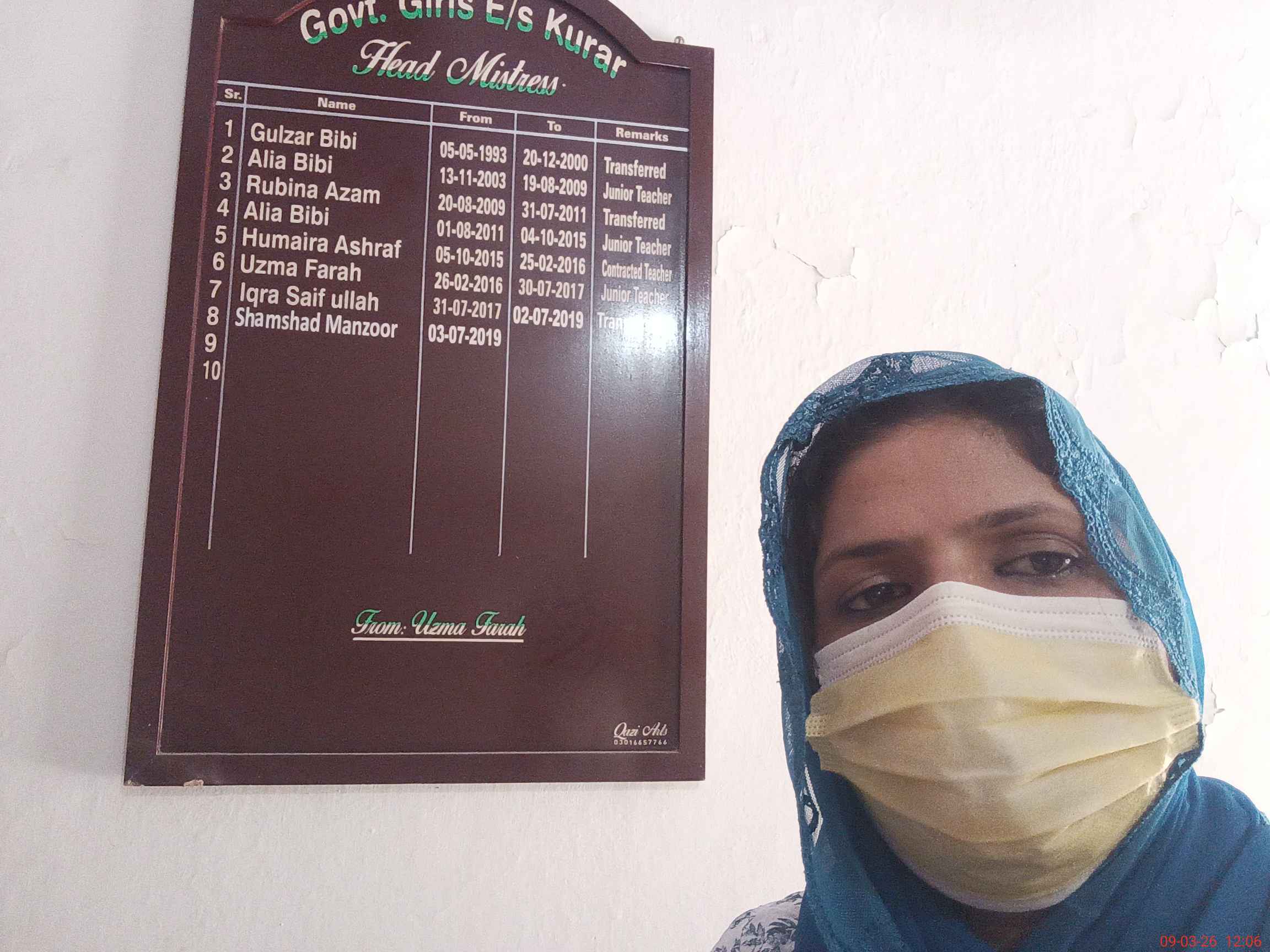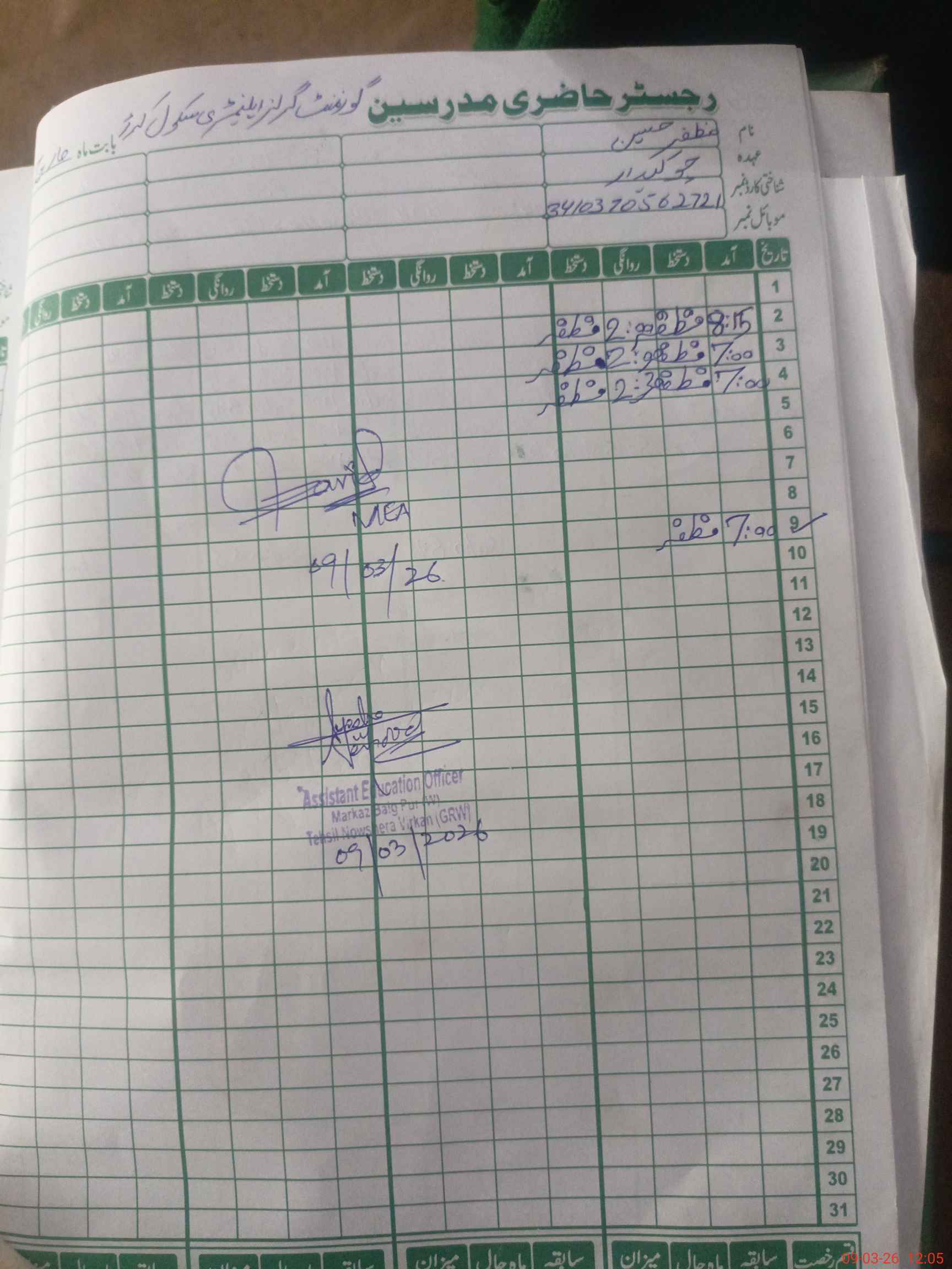| Name: SH**** MA**** Designation: (School Headmaster's/Headmistress's) EST ENGLISH Phone/Cell Number: 03**** |