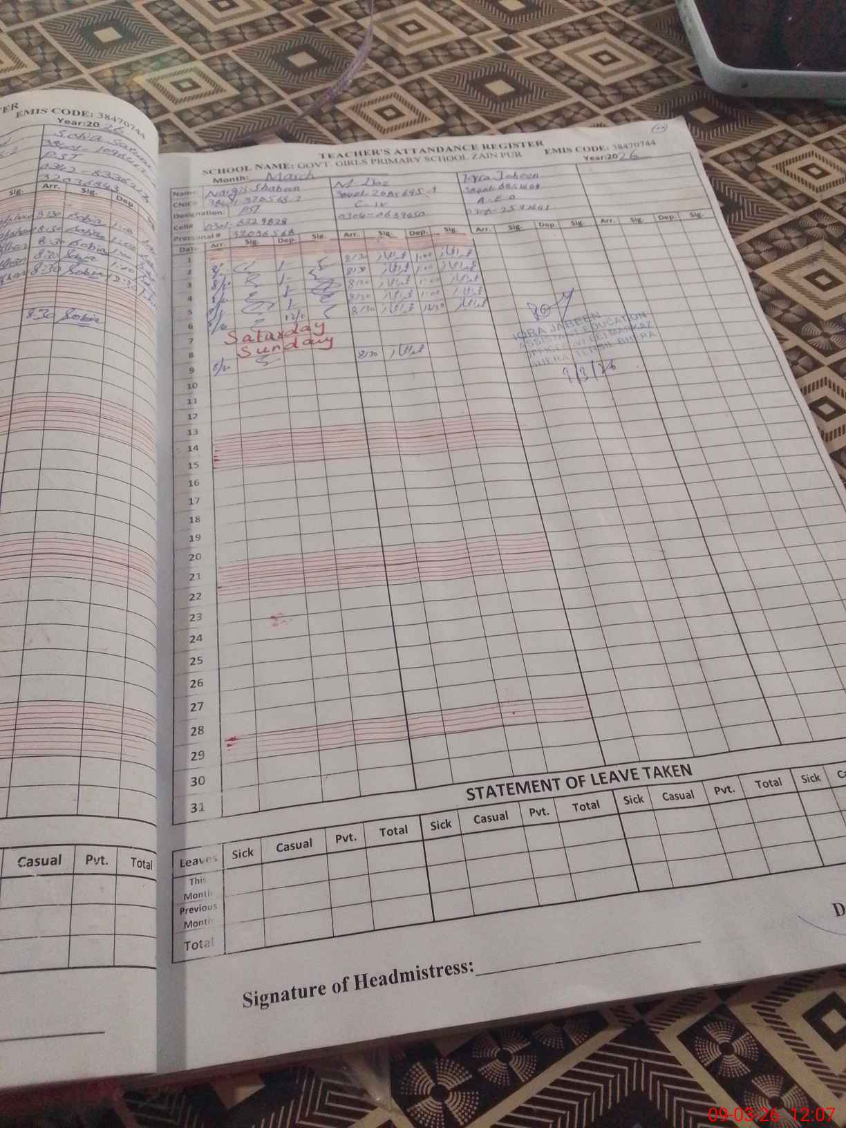 | Name: Uz**** No**** Designation: (School Headmaster's/Headmistress's) PST Phone/Cell Number: 03**** |