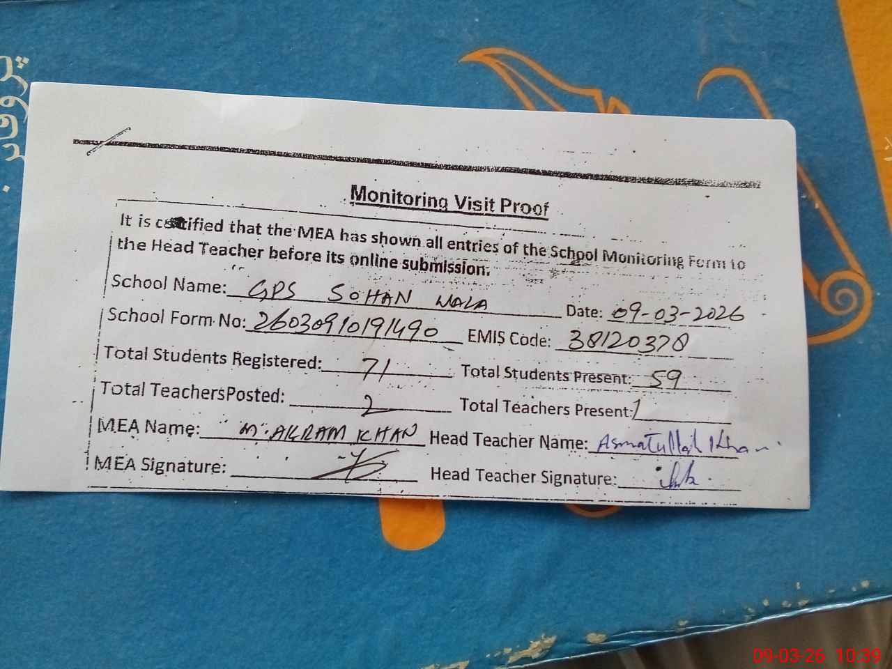 | EMIS Code: 38120378 | Name of School: GPS SOHAN WALA | |||
