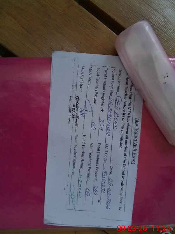 | Attendance Register | Head Teacher | MEA with School | Visit Proof |