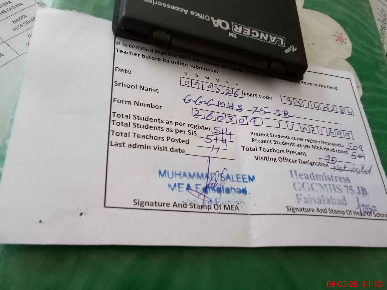 | EMIS Code: 33140284 | Name of School: GGCMHS CHAK NO. 75 JB | |||