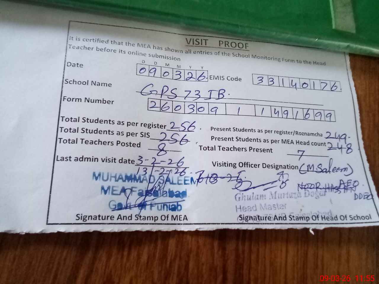 | EMIS Code: 33140176 | Name of School: GPS CHAK 73 JB I FSD | |||