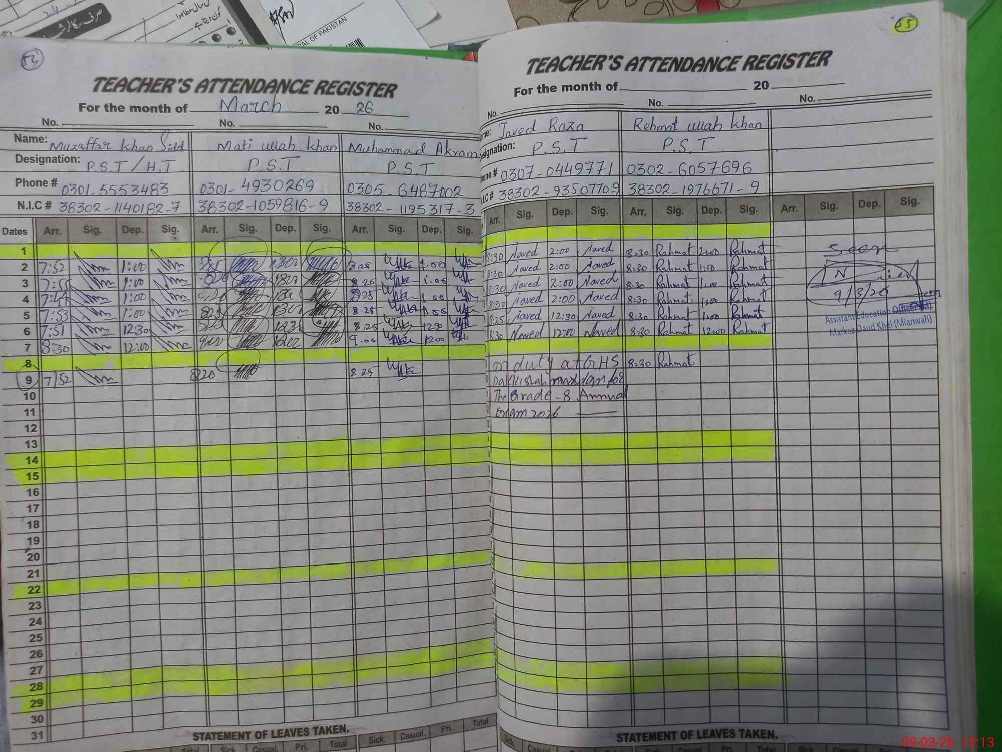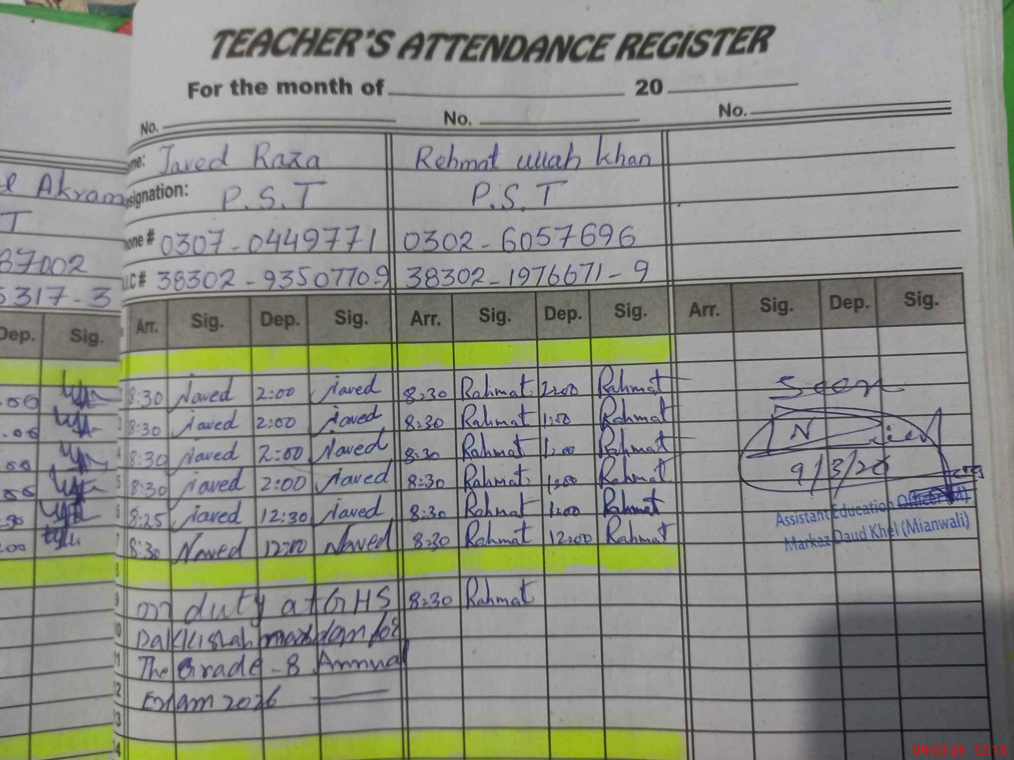 | Name: Mu**** Kh**** Designation: (School Headmaster's/Headmistress's) PST Phone/Cell Number: 03**** |