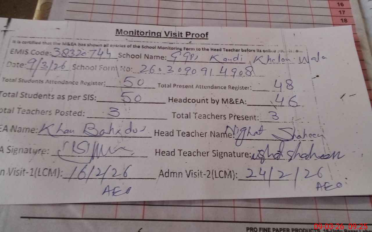 | EMIS Code: 38320744 | Name of School: GGPS KANDI KHEL | |||