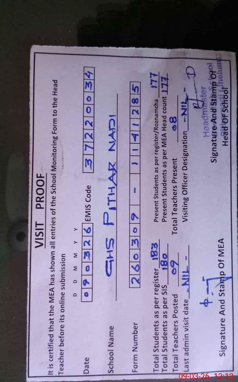 | EMIS Code: 37220034 | Name of School: GHS PITHAR NADI | |||