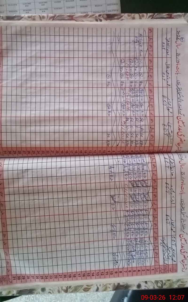| Remarks (Use Separate Page if Required): Teacher Atta ur Rehman absent from 02 Des 25 but still no action by education department and working of boundary wall in progress | |||||