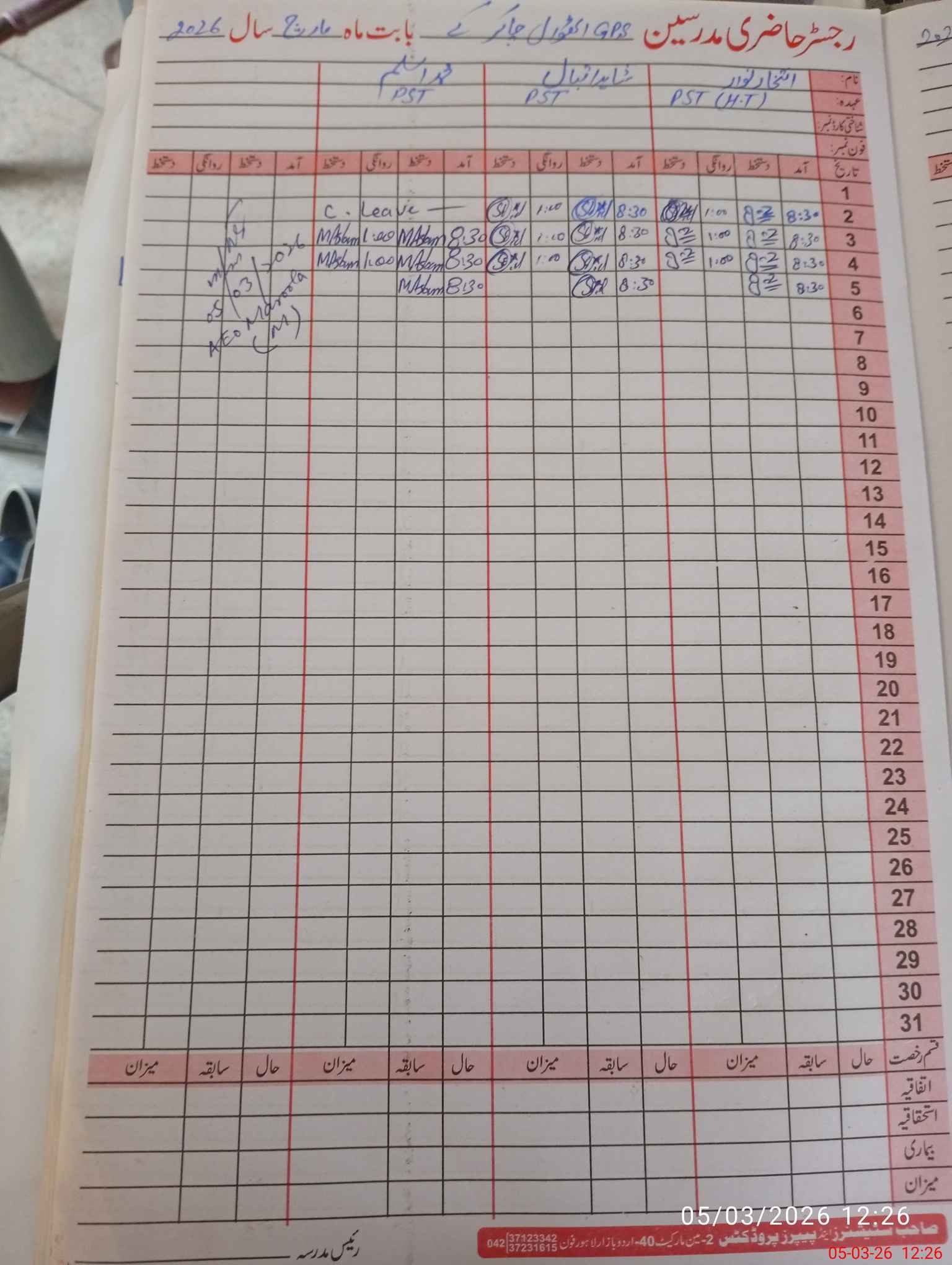 | Name: Mu**** Hu**** Designation: (School Headmaster's/Headmistress's) PST Phone/Cell Number: 03**** |