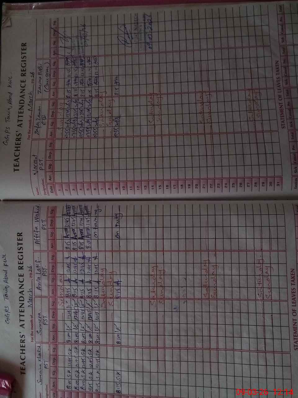 | 36**** | Af**** Wa**** | PST Science/Maths | Regular | 0 | 0 | 0 | 0 | 0 | 0 | 0 | 0 | 0 | Exam Duty |