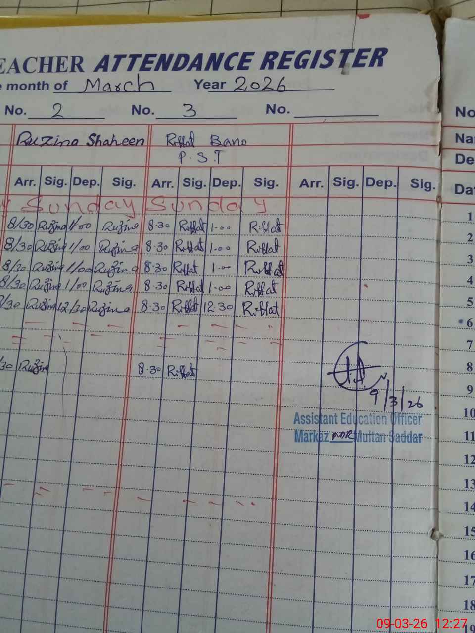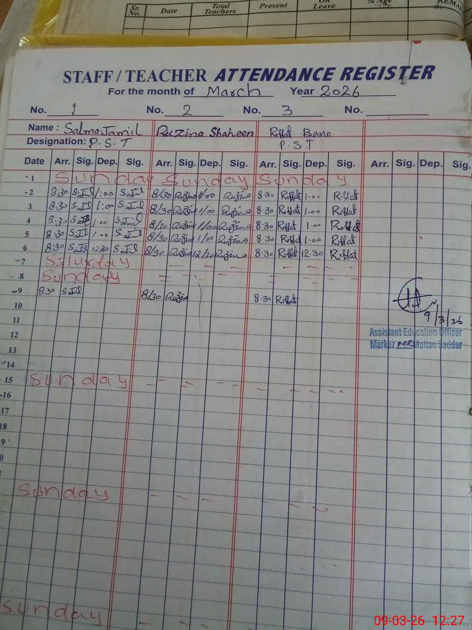 | Name: SA**** JA**** Designation: (School Headmaster's/Headmistress's) PST Phone/Cell Number: 03**** |