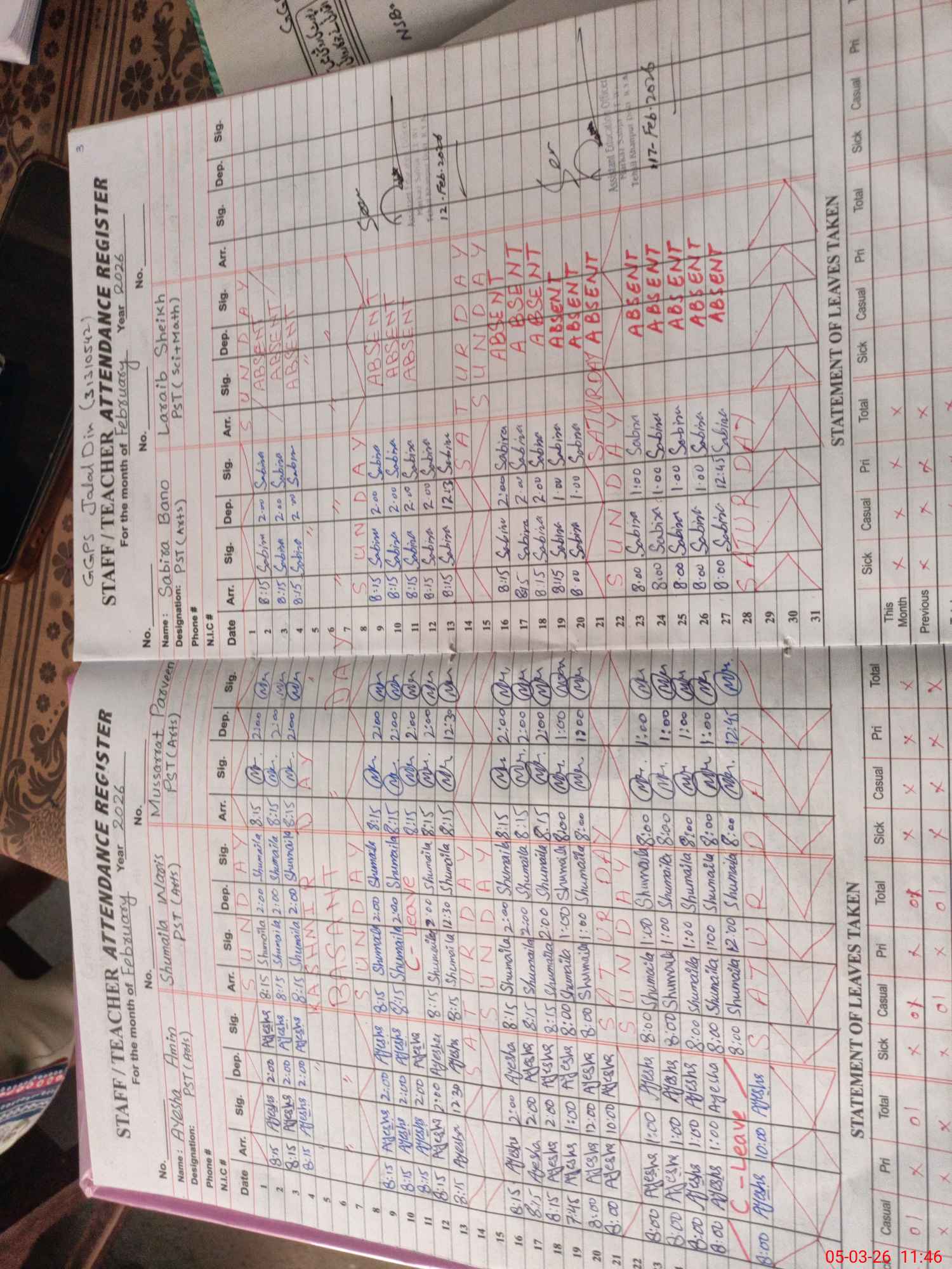 | 31**** | La**** Sh**** | PST (Science-Math) | Regular | 0 | 0 | 0 | 0 | 0 | 0 | 0 | 0 | 0 | Absent (Un-Authorized) |