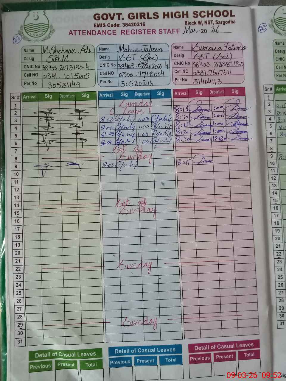 | 38**** | Sa**** Za**** | PST Science/Maths | Regular | 0 | 0 | 0 | 0 | 0 | 0 | 0 | 0 | 0 | Maternity |