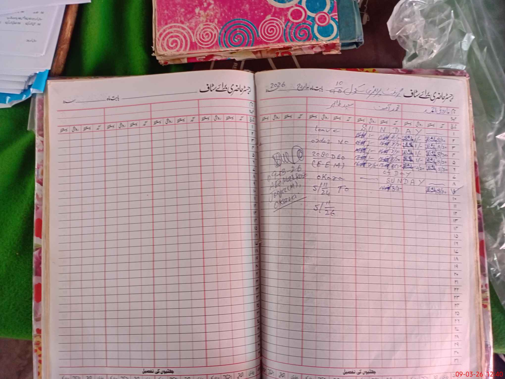 | CNIC | Full Name | Designation | R/C | Absence During Last Calender Month |