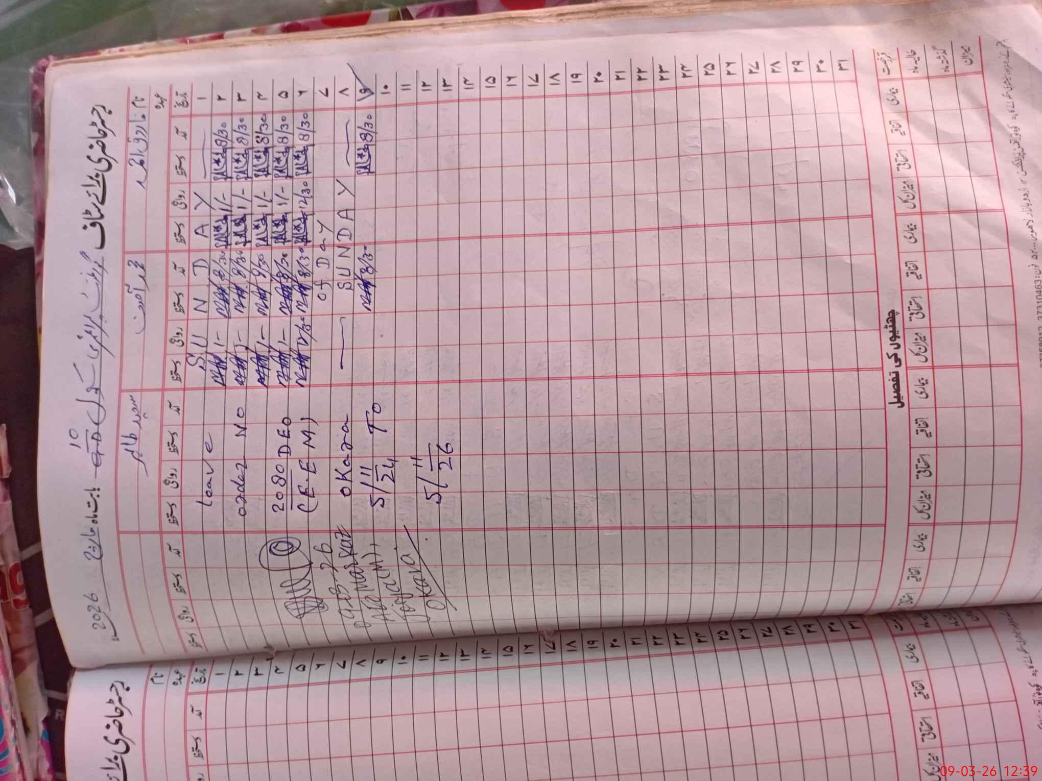 | Leave | Duty | Absent | Maternity | Medical | Ex- Pak |