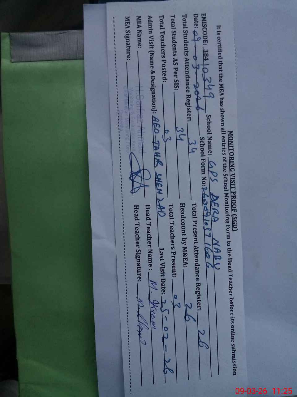| EMIS Code: 38410349 | Name of School: GPS DERA NABU | |||