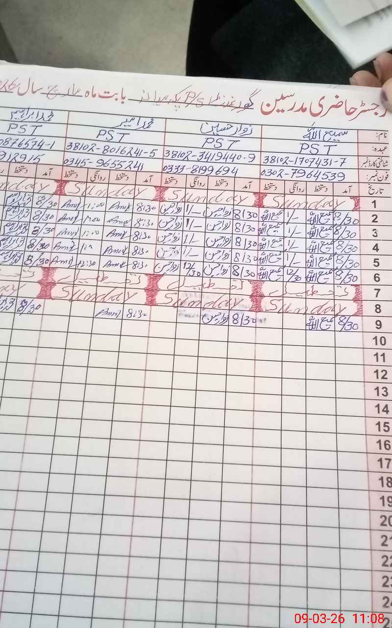 | Name: SA**** UI**** Designation: (School Headmaster's/Headmistress's) PST Phone/Cell Number: 03**** |