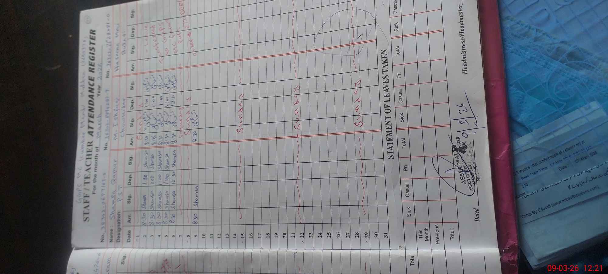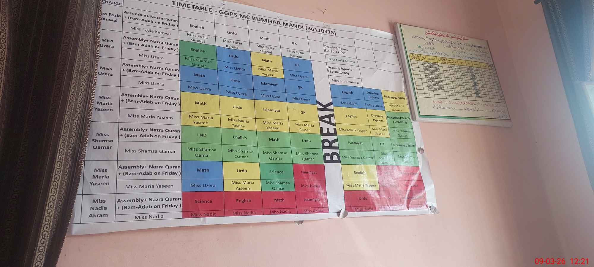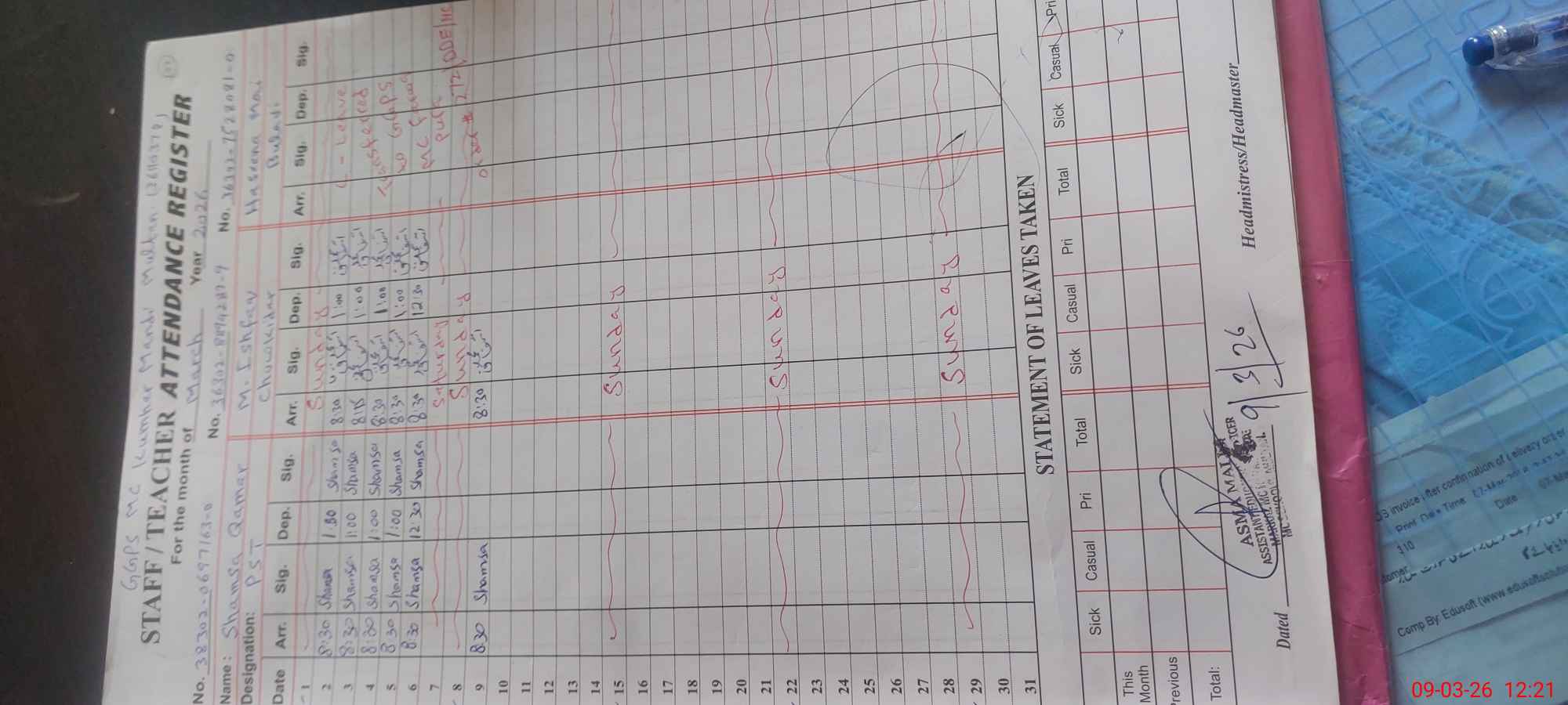 | Name: Uz**** Kh**** Designation: (School Headmaster's/Headmistress's) pst Phone/Cell Number: 03**** |