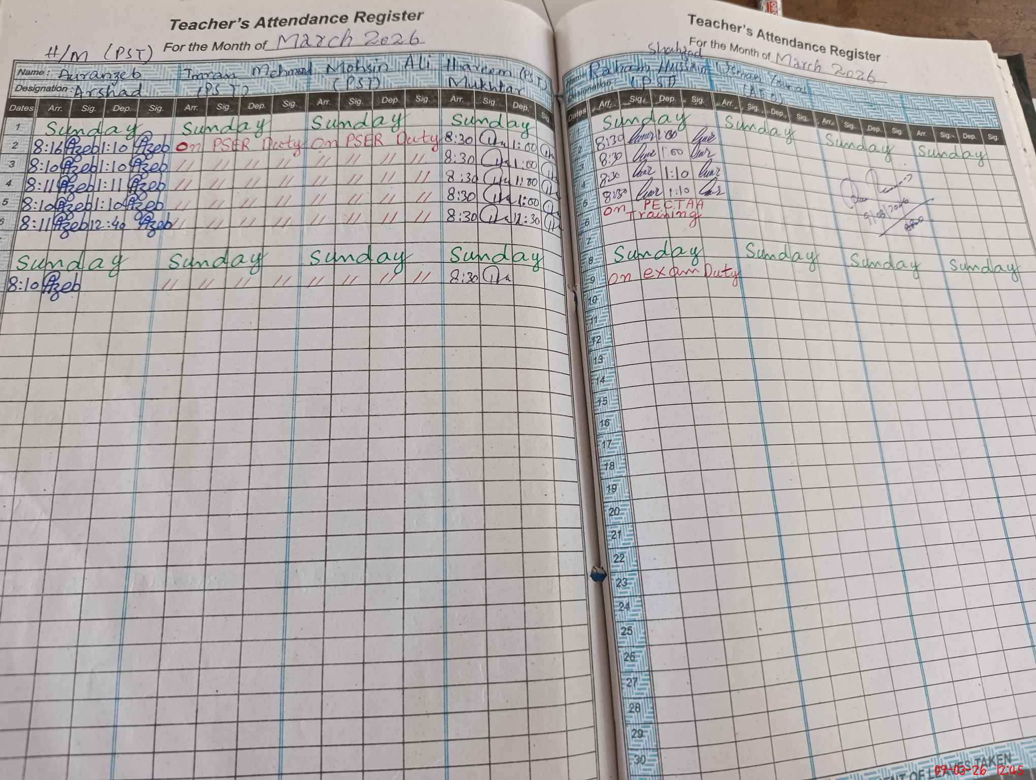 | 32**** | Ra**** Hu**** Sh**** | PST Science/Maths | Regular | 0 | 0 | 0 | 0 | 0 | 0 | 0 | 0 | 0 | Exam Duty |