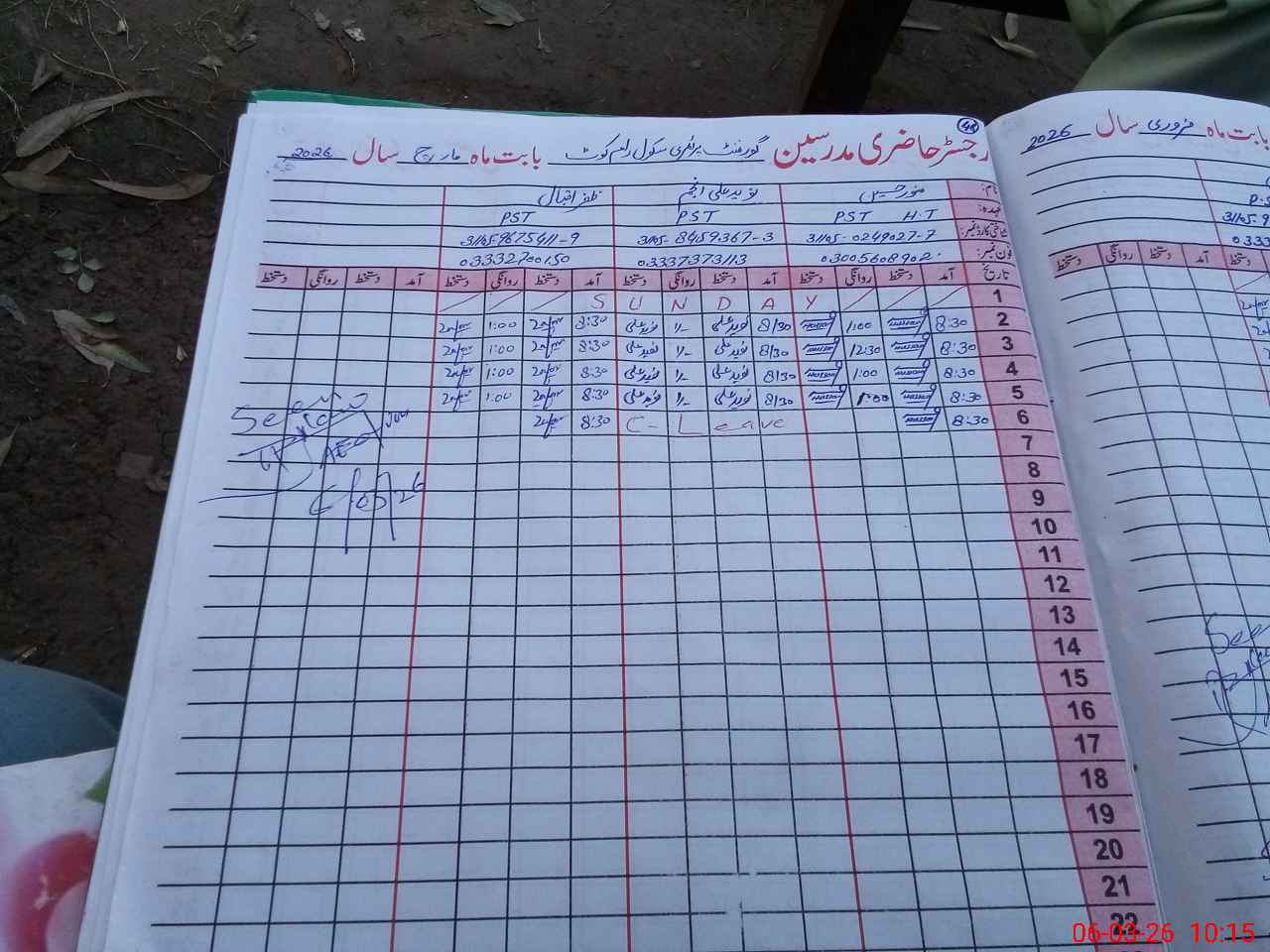 | 31**** | Na**** Al**** An**** | PST Science/Maths | Regular | 0 | 0 | 0 | 0 | 0 | 0 | 0 | 0 | 0 | Absent (Un-Authorized) |