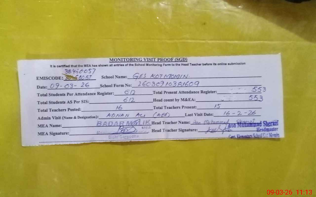 | EMIS Code: 38460057 | Name of School: GES KOT MOMIN | |||