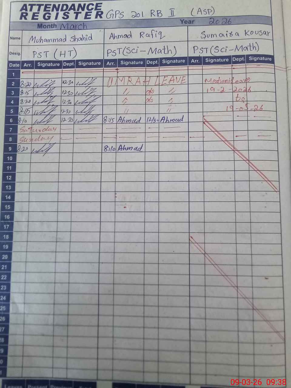 | 33**** | Su**** Ko**** | PST Science/Maths | Regular | 10 | 0 | 0 | 10 | 0 | 0 | 0 | 0 | 0 | Maternity |