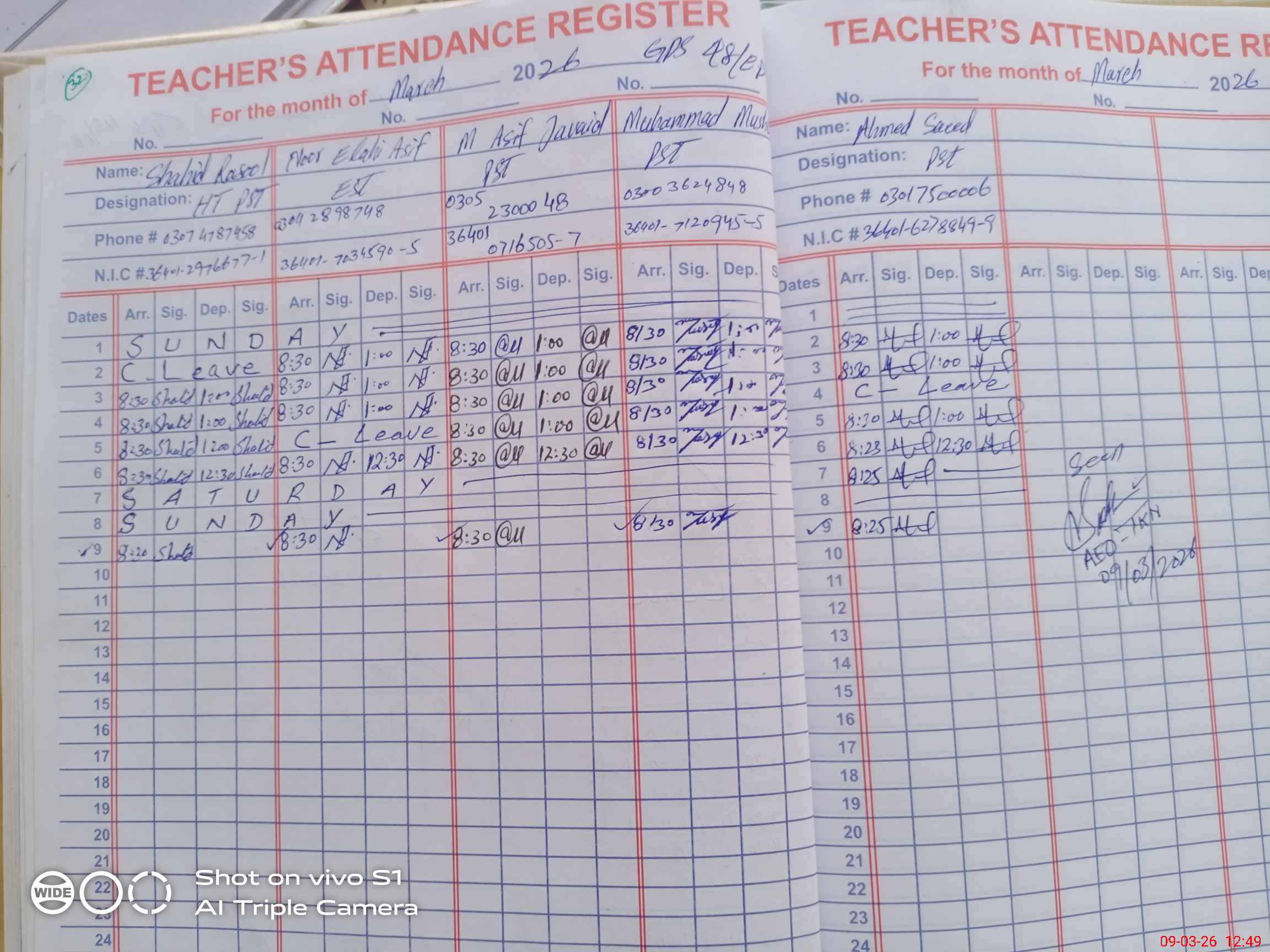 | Name: SH**** RA**** Designation: (School Headmaster's/Headmistress's) PST Phone/Cell Number: 03**** |