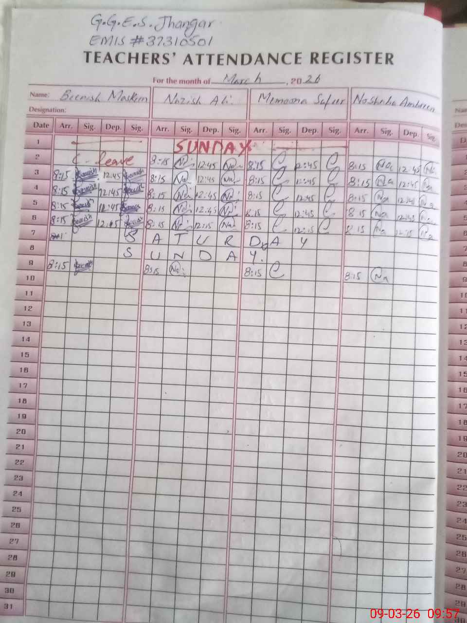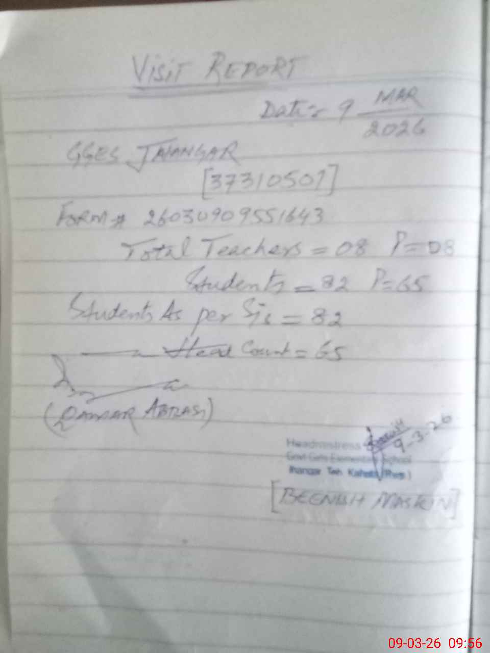 | Attendance Register | Head Teacher | MEA with School | Visit Proof |