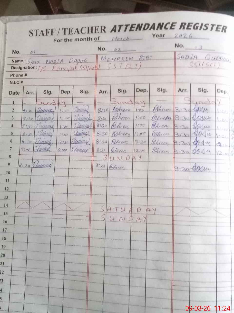 | CNIC | Full Name | Designation | R/C | Absence During Last Calender Month |