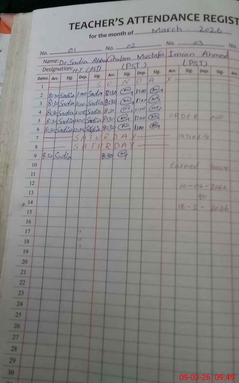 | Name: DrSa**** Ab**** Designation: (School Headmaster's/Headmistress's) Head Mistress Phone/Cell Number: 03**** |