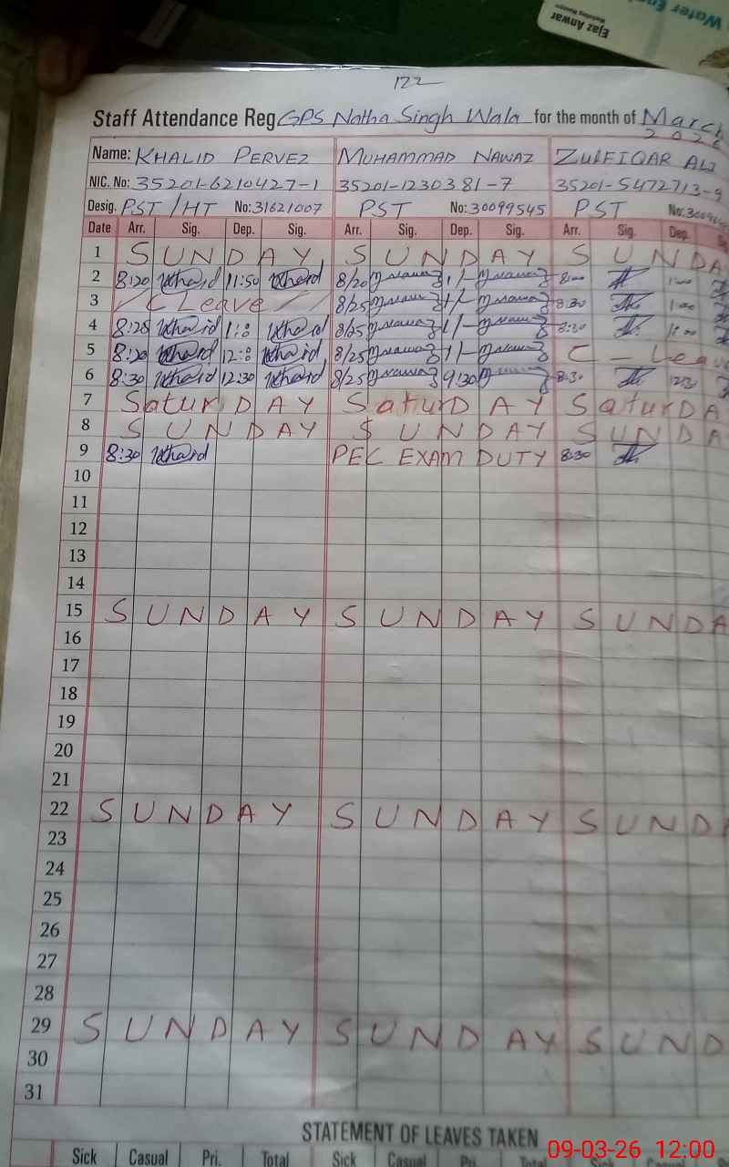 | 35**** | Mu**** Na**** | PST Arts | Regular | 0 | 0 | 0 | 0 | 0 | 0 | 0 | 0 | 0 | Exam Duty |