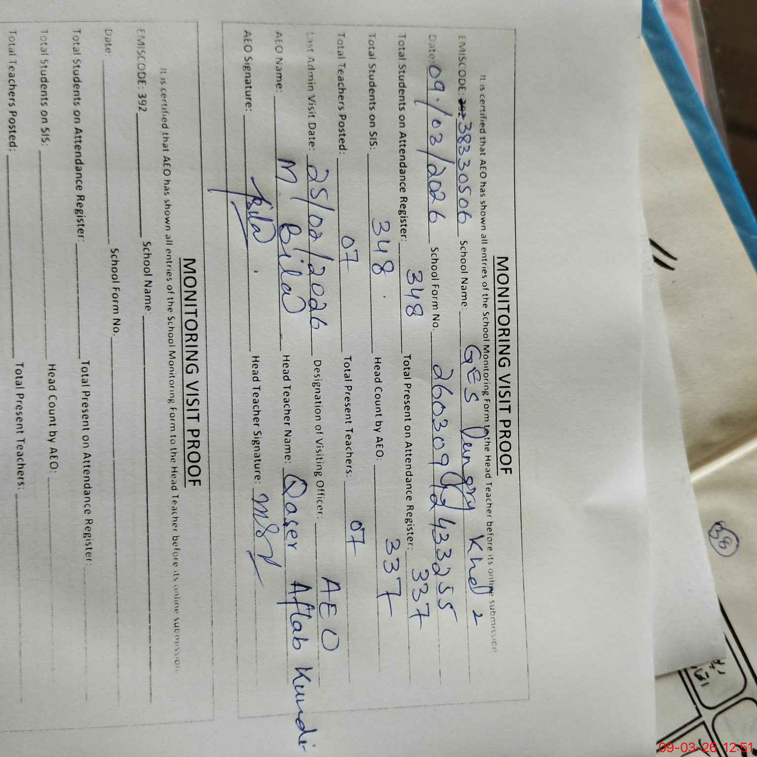 | Name: Qa**** Af**** Designation: (School Headmaster's/Headmistress's) Est Phone/Cell Number: 03**** |