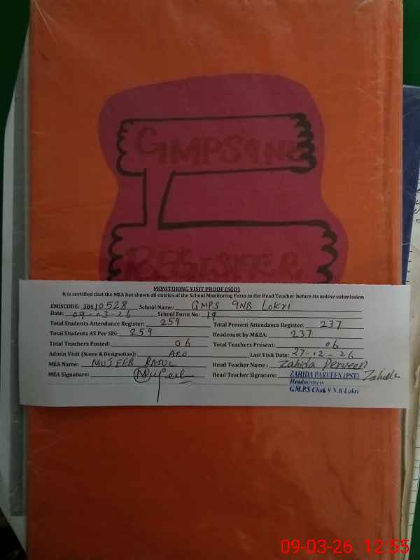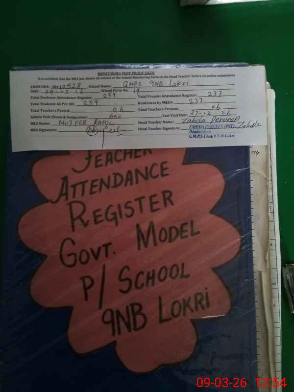 | EMIS Code: 38410528 | Name of School: GMPS CHAK NO.9 NB LOKRI | |||