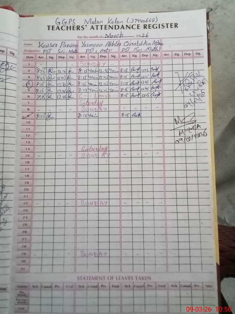 | Monitoring Date: 09-03-2026 | Start Time: 09-03-2026 10:41 AM | End Time: 09-03-2026 11:01 AM | Name of MEA: Mu**** Sa**** | |