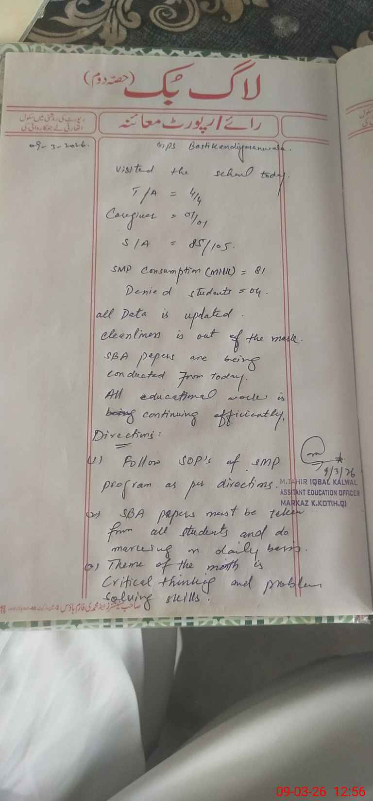 | Monitoring Date: 09-03-2026 | Start Time: 09-03-2026 12:19 PM | End Time: 09-03-2026 12:56 PM | Name of MEA: Mu**** Ta**** Iq**** | |