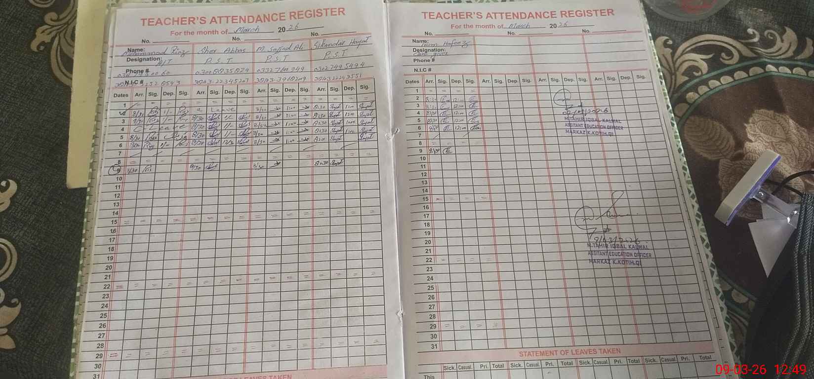 | Name: MU**** RI**** Designation: (School Headmaster's/Headmistress's) PTC/JV Phone/Cell Number: 03**** |