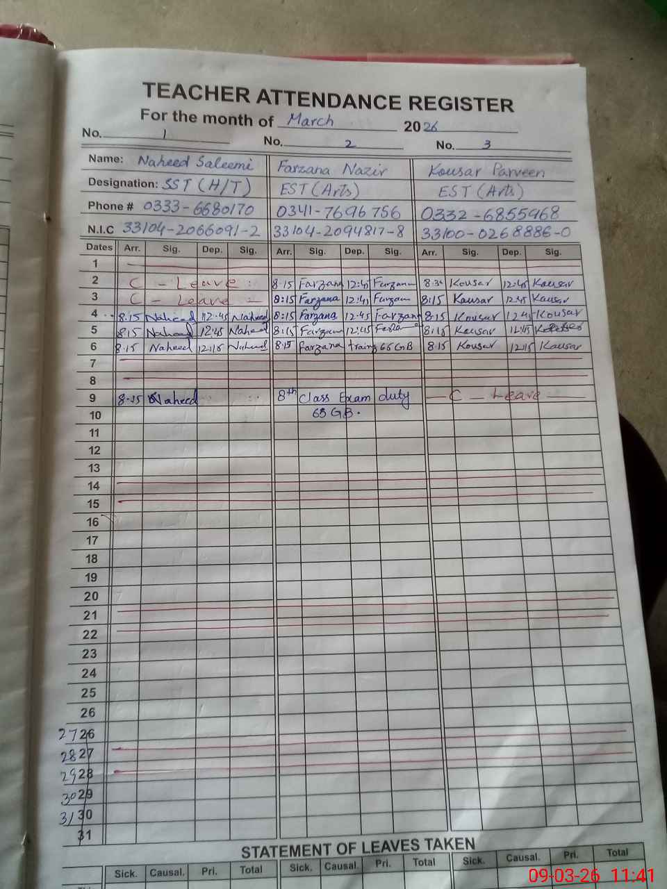 | Name: NA**** SA**** Designation: (School Headmaster's/Headmistress's) SST Phone/Cell Number: 03**** |