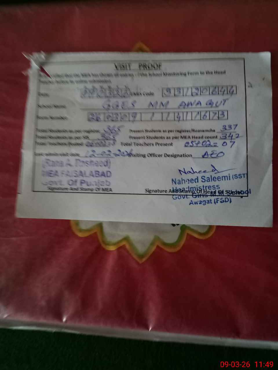 | Certified that this School was Inspected by the Undersigned MEA/DMO Today and the Information Stated Above is as Per Record. | |||||
