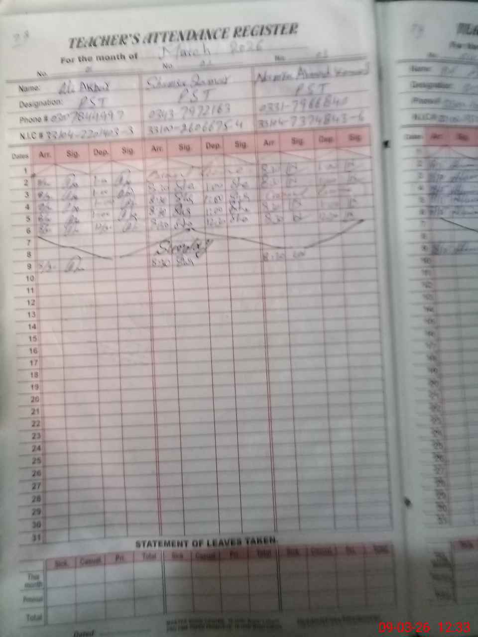 | Name: AL**** AK**** Designation: (School Headmaster's/Headmistress's) PST Phone/Cell Number: 03**** |