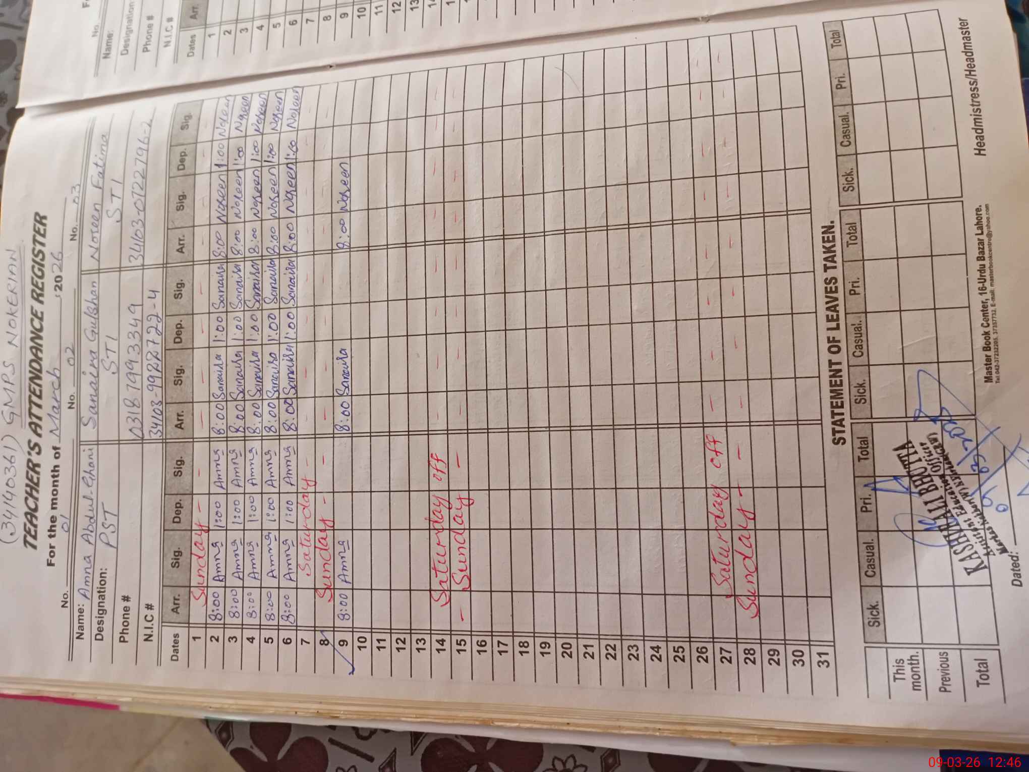 | Name: Am**** Ab**** Gh**** Designation: (School Headmaster's/Headmistress's) PST Phone/Cell Number: 03**** |