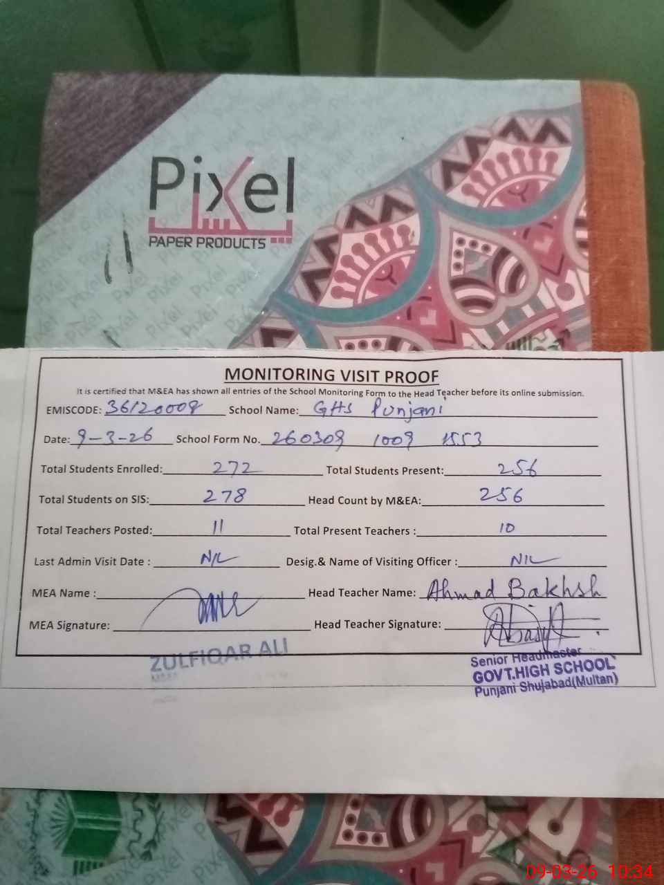 | EMIS Code: 36120008 | Name of School: GHS PUNJANI P/O LASURI | |||