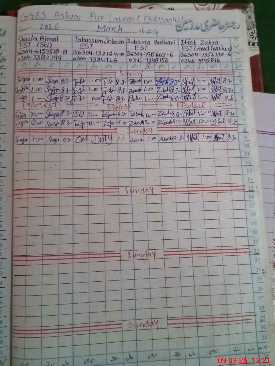 | 36**** | Ta**** Ja**** | EST General Arts | Regular | 0 | 0 | 0 | 0 | 0 | 0 | 0 | 0 | 0 | Exam Duty |