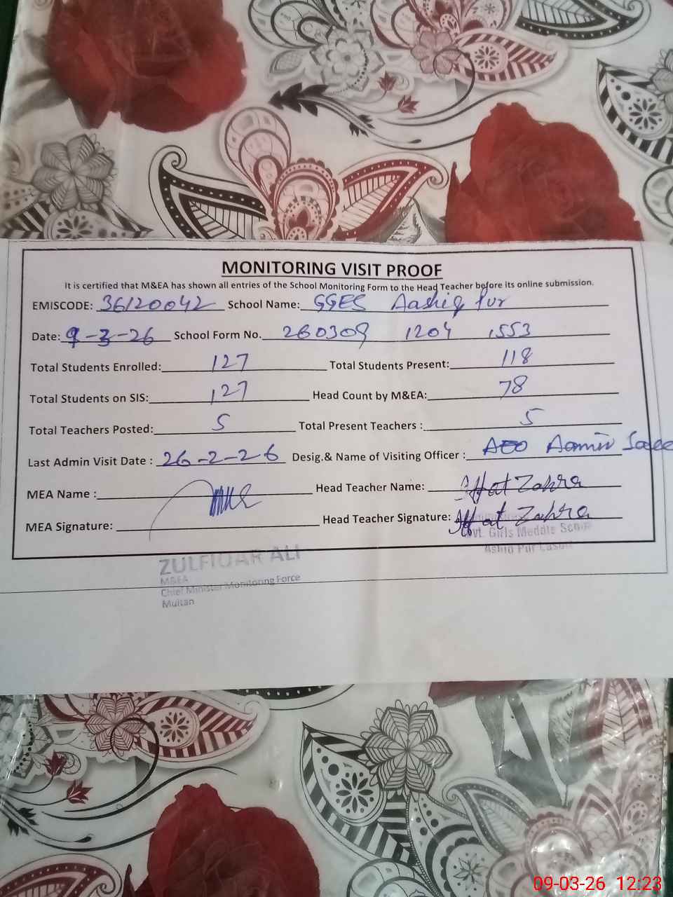 | EMIS Code: 36120042 | Name of School: GGES AASHIQ PUR LASOORI SHUJABAD | |||