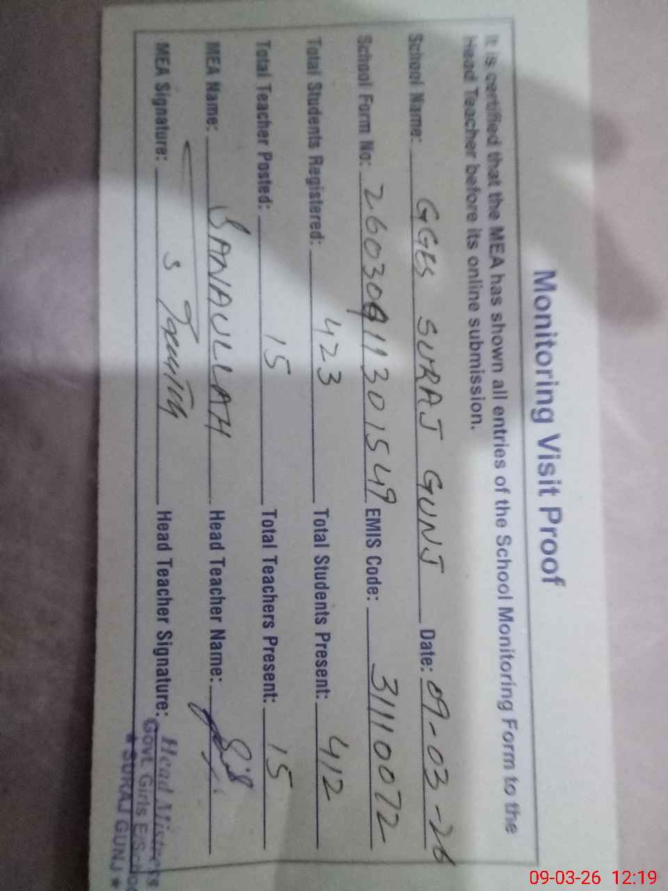 | EMIS Code: 31110072 | Name of School: GGES SURUJ GUNJ | |||