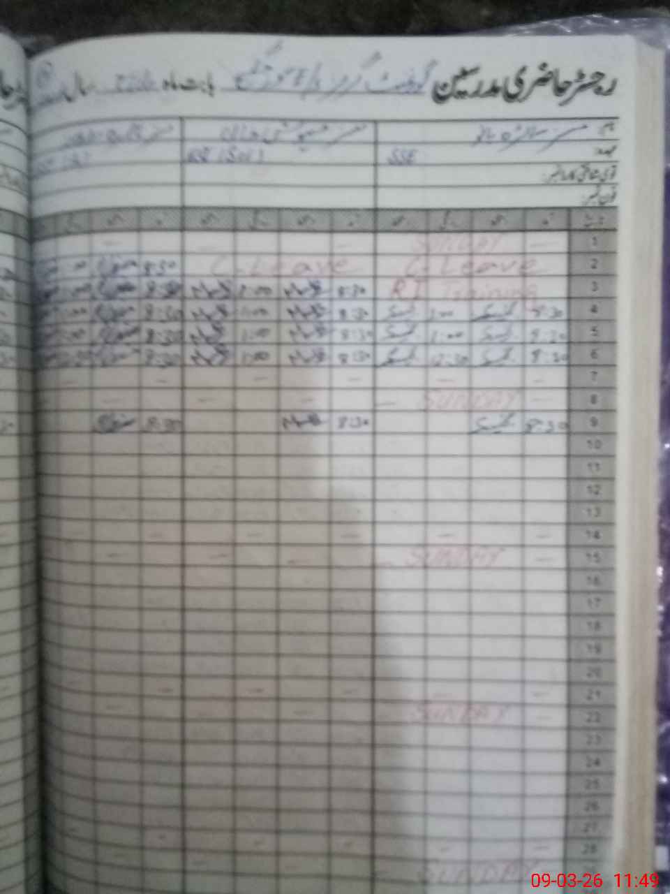 | 31**** | Az**** Sa**** | PST Arts | Regular | 0 | 0 | 0 | 0 | 0 | 0 | 0 | 0 | 0 | Exam Duty |