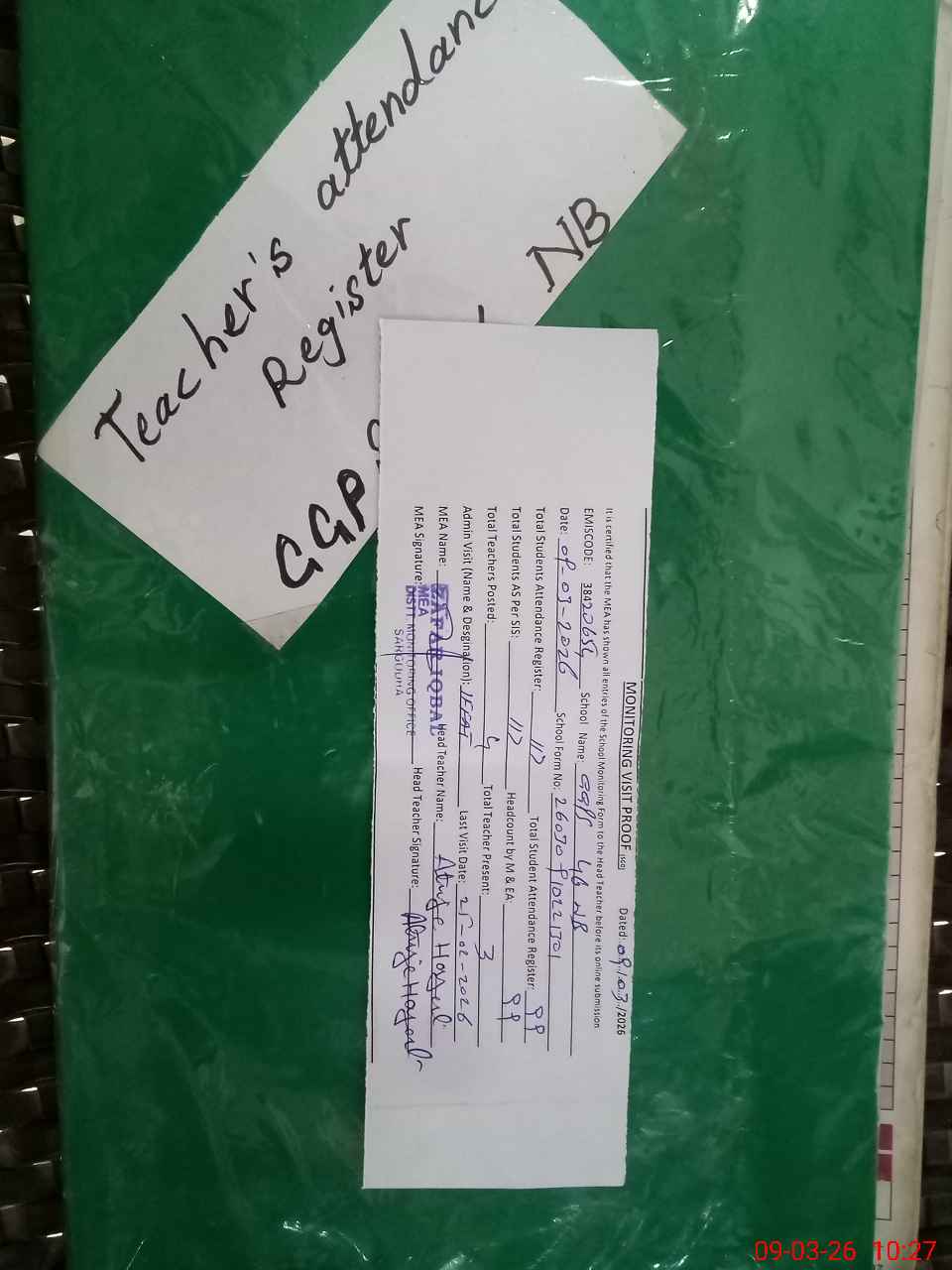 | Attendance Register | Head Teacher | MEA with School | Visit Proof |